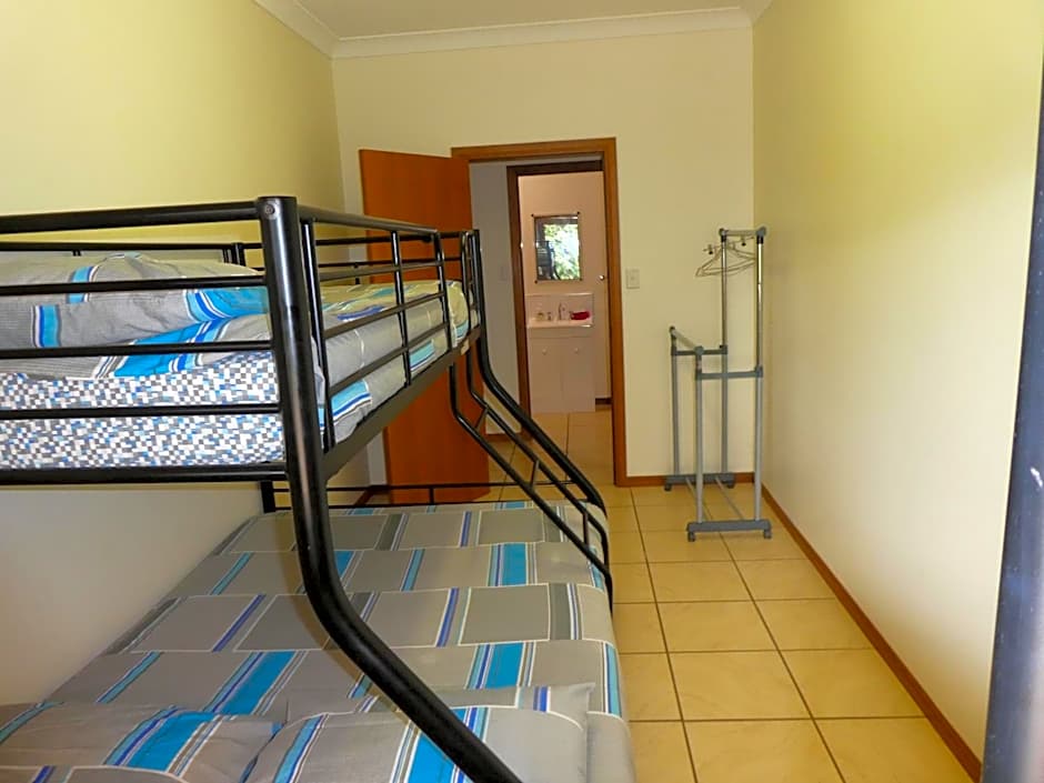 This triple room is located next to the kitchen. The room includes a bunk bed with double on the base and single on the top. Guests have access to a shared kitchen, a lounge and dining area.