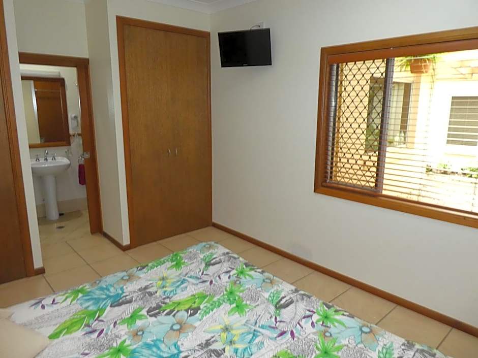 This large, private room includes a queen-sized bed and an private bathroom. It also includes a wardrobe and a TV.